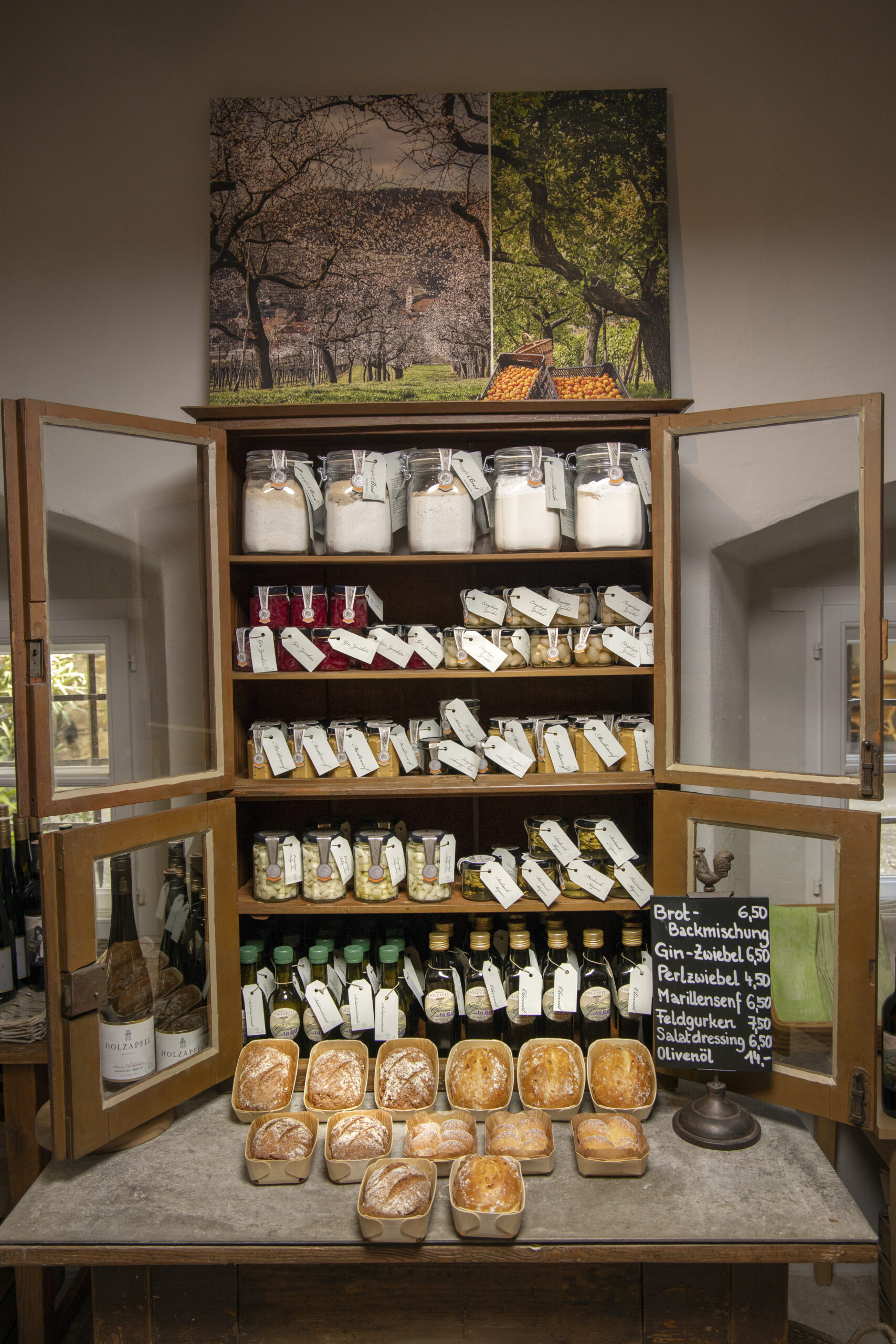 Gustieren Sie in unserem Delikatessen Geschäft und nehmen Sie sich zusätzlich zu unseren Weinen die Holzapfel-Gourmandisen zum Genießen mit nach Hause – auch kleine Snacks – passend zu unseren Weinen erwarten Sie.