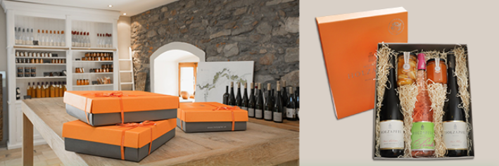 Selbstverständlich können Sie den Inhalt (zB. Wein, Schnaps und Gourmandisen) selbst, aus unserem handverlesenen, umfangreichen und selbstproduzierten Sortiment wählen.